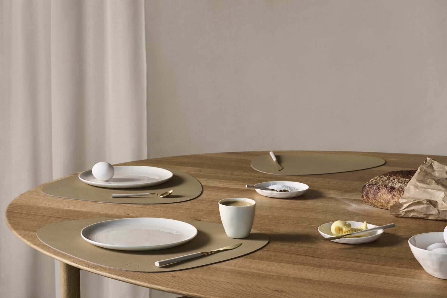 Omschrijving LIND DNA Placemats Nupo - Leer - Khaki - Curved - 44 x 37 cm - 2 Stuks