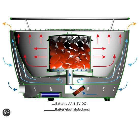 - Volledig rookarme werking dankzij dubbele behuizing en actieve ventilator