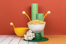 Rond etenstijd verschijnt langzaam het pasta monster van Ototo uit je keukenlade om je te helpen bij het avondeten! Met behulp van deze kleine monsters lepel je met gemak glibberige spaghetti of tagliatelle slierten op je bord. De set bestaat uit één spaghetti lepel met gat en ronde opscheplepel. Daarnaast kun je deze leuke lepels ook gebruiken om salade mee op te scheppen.
