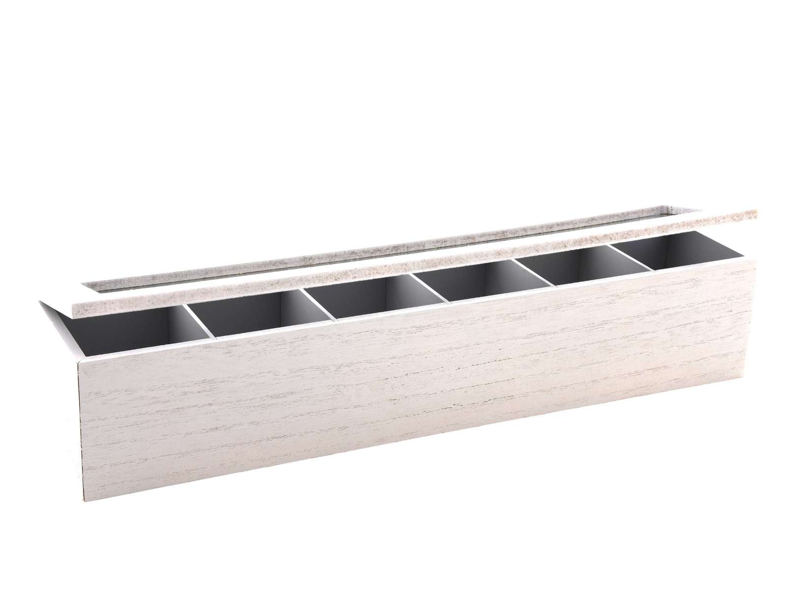 Omschrijving Cookinglife Theedoos - Theekist - Hout Wit - 6 vakken - met Glazen Deksel - 43 x 9 x 9 cm