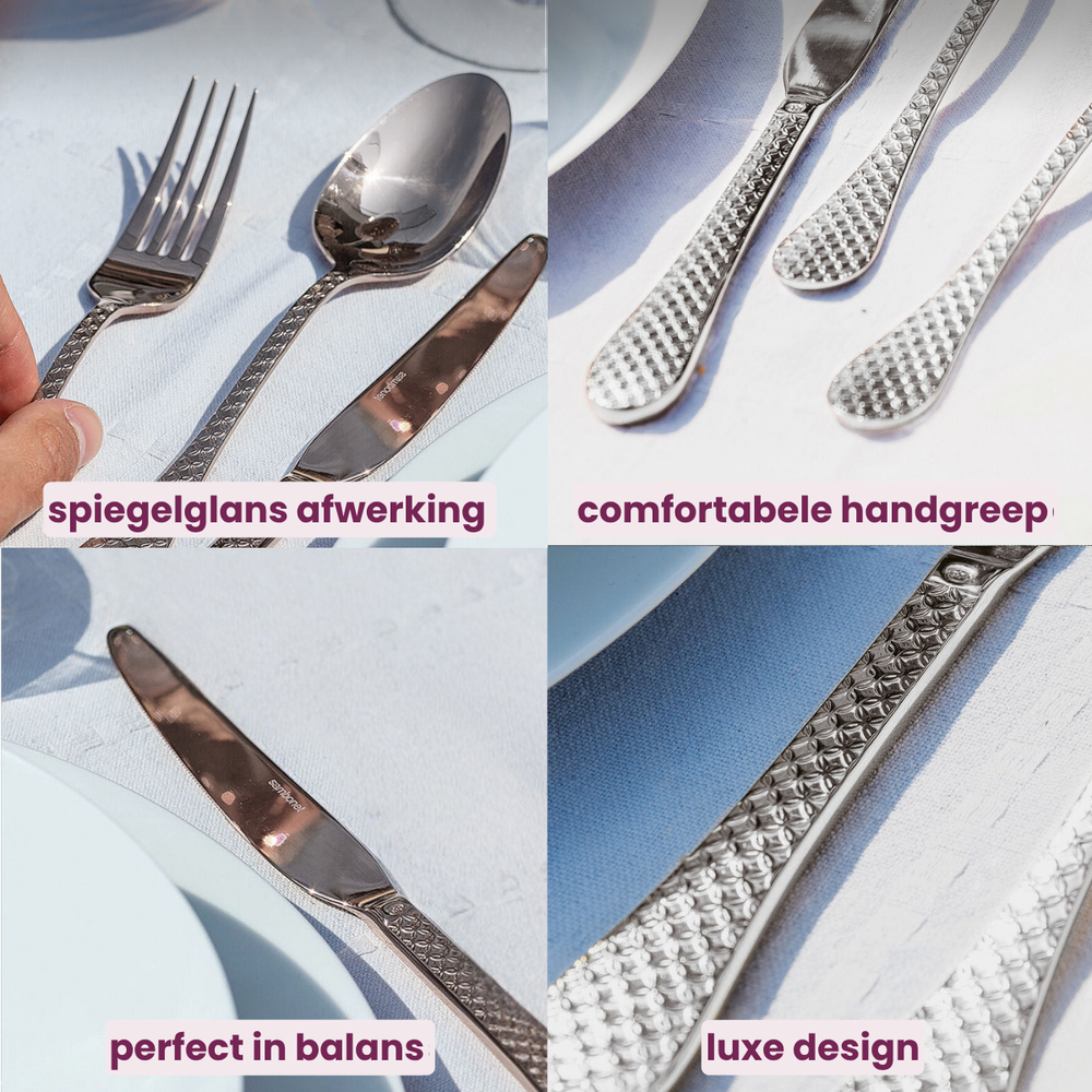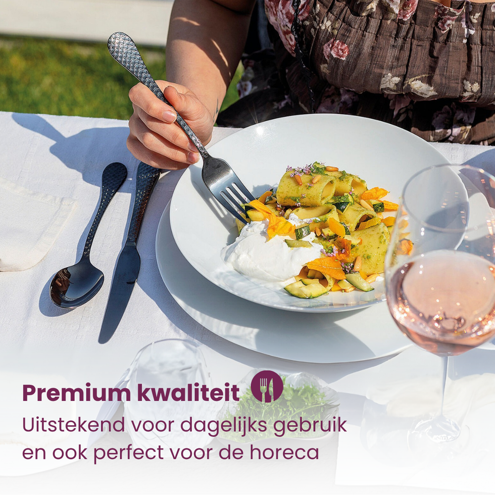 Kies voor een prachtig gedekte tafel met dit Sambonet Taormina bestek. Deze koffielepels zullen je gasten verrassen! Dankzij de print op het handvat is dit bestek net even anders dan je andere bestek. Het bestek komt in meerdere kleuren, kies voor zilver, koper, zwart of goud. Combineer de koffielepels bijvoorbeeld met de gebaksvorkjes of kies voor één van de besteksets!