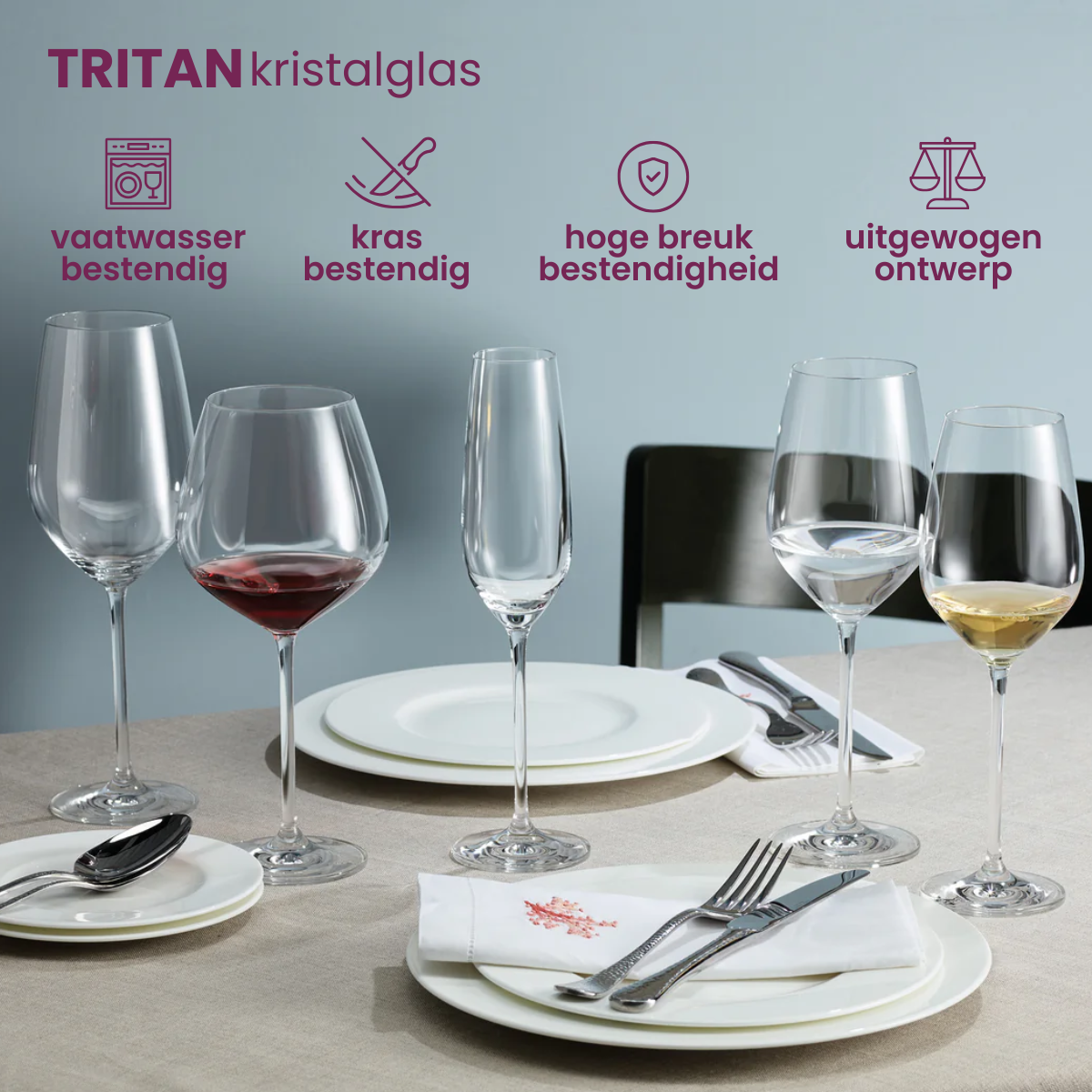 - Gemaakt van Tritan-kristalglas – extra sterk en krasbestendig