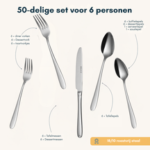 De Sola Bestekset Fleurie 18/10 RVS 50-delig bestaat uit: