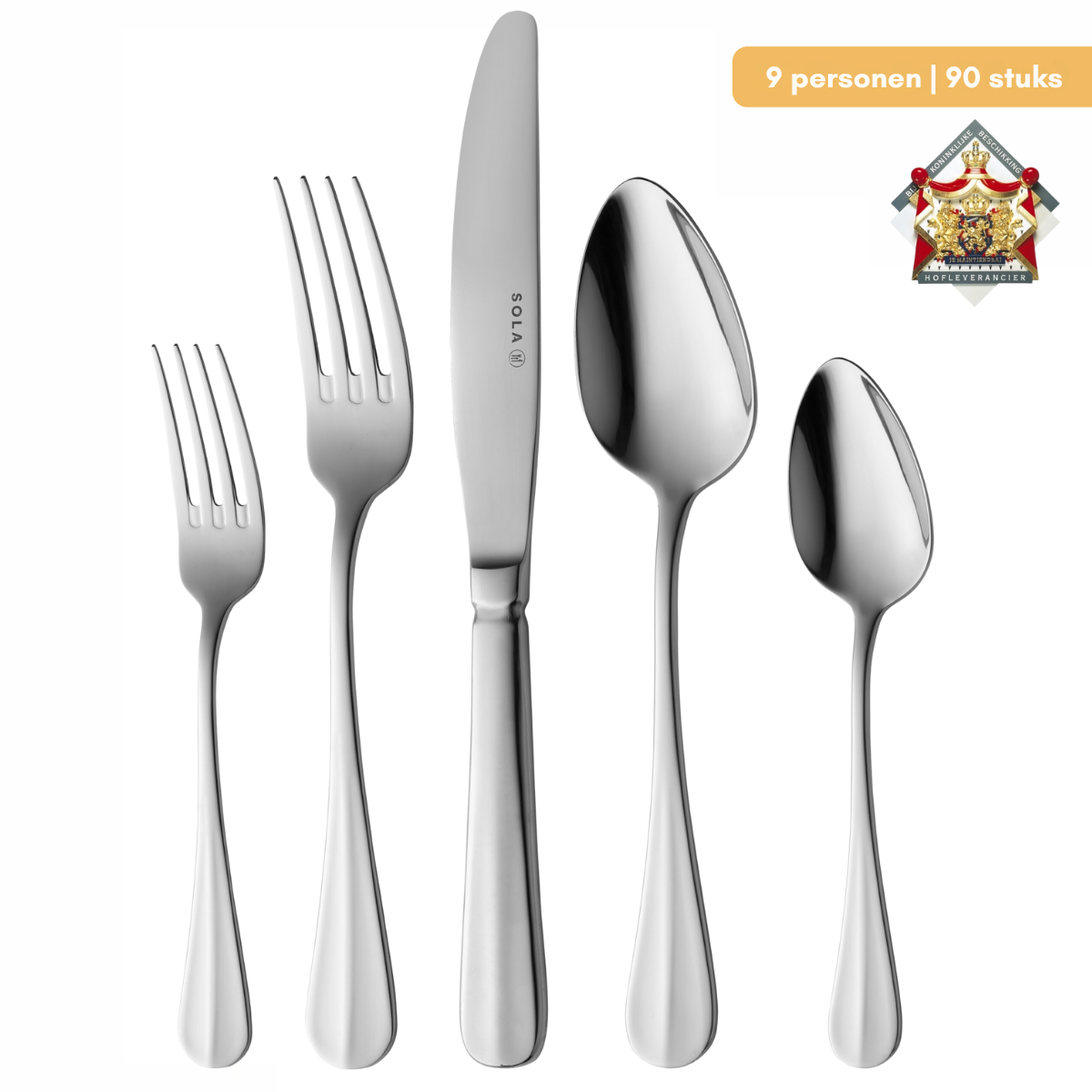 Omschrijving Sola Bestekset Hollands Glad - 18/10 RVS - 90 delig / 9 personen