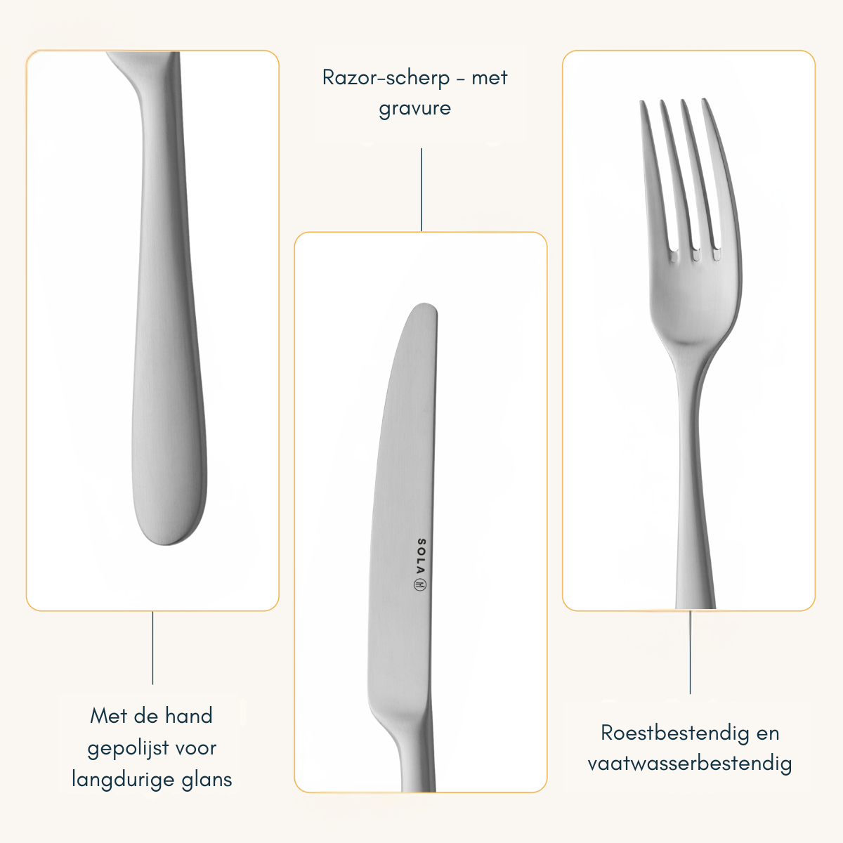 Omschrijving Sola Bestekset Nordica MAT - 18/10 RVS - 24 delig / 6 personen