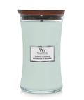 Omschrijving WoodWick Geurkaars Large Sagewood & Seagrass - 18 cm / ø 10 cm - Geurkaars in Glas - Houten Lont