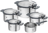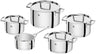 | Inhoud doos | 5-Delig Zwilling Pannenset Essence 4 Kookpannen ø 16, 20, 20, 24 cm & Steelpan ø 16 cm + Deksels |